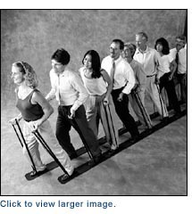 TeamTrek, designed for single or multiple groups or teams, captures the excitement and competition of outdoor challenges while safely providing the business related experience of indoor simulations. This popular 'group transport device' provides high impact learning exercises which create dynamic opportunities for dramatizing real-life issues facing leaders and organizations. TeamTrek Specifications TT1/10: Two 6" x 15' treads of highly mainured laminated rubber, each with ten 'control straps'. TT1/2X5: Four 6" x 7-1/2' treads, each with five 'control straps' Typical Number of Participants: 5 to 10 Typical Activity Area: 30' x 60' Indoor or Outdoor Location Set-up and Operaton Manual Provided Shipping Weight/Dim: 27 Lbs/13" x 13" x 13" Download a PDF spec sheet for the Team Trek (Acrobat PDF Reader required).